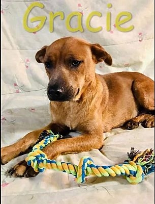 Gracie is a very sweet but a little shy girl. She is spayed, current on vaccines and microchipped. She is loving and playful. She is very insecure on a leash and will lay down. She does not show well at an adoption event because it scares her but in her own environment will be playful and living. Gracie needs a great home with caring people.